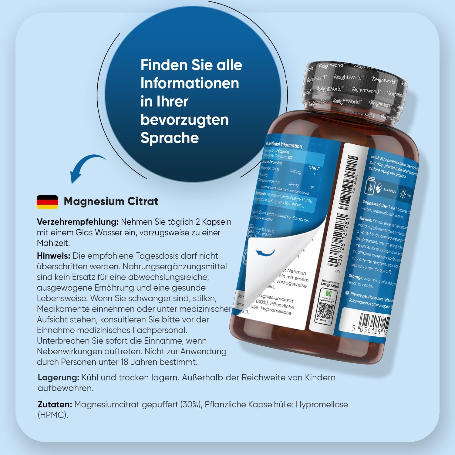 - Alternative to powder and tablets - Magnesium citrate capsules are easy to swallow. It is also an alternative to powders and tablets. The product has a supply for 4 months.