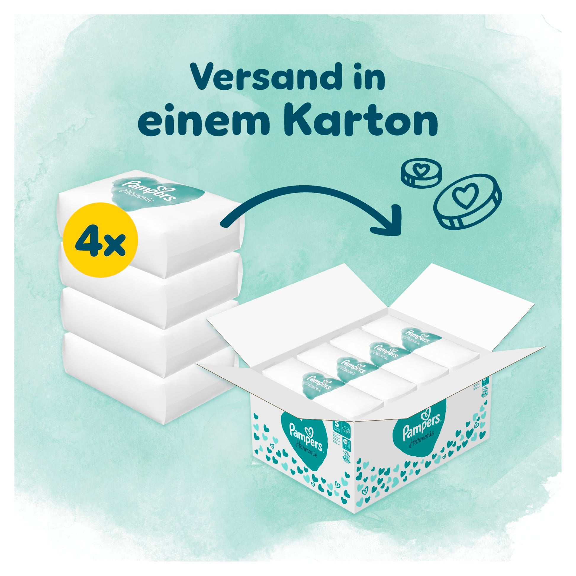 Pampers Harmonie Nappies Size 4, 174 Nappies, 9 kg - 14 kg, Gentle Skin Protection with 100% Pampers Protection
